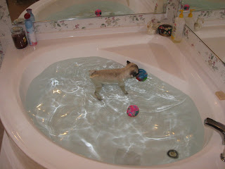 Lastly...Here is Arlo swimming in the garden tub! He was having a blast! It was soooo hot outside today that when he came in from going outside he was panting and trying to lay in his water bowl, so I decided it was a good time to go swimming! It worked beautifully to cool him off and after he was running and playing with renewed vigor. I'm jealous. I wish I was small enough to go swimming in a tub.