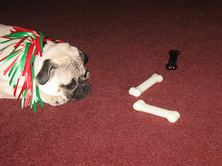 And then, after my morning rituals it was time to open prezzies! Santa Paws came to my house! I put my christmas collar on to get in the Christmas spirit.