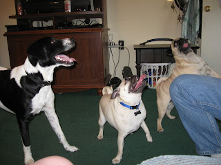 The big black and white guy is my cousin Amos, and the little guy that looks just like me except just a little darker colored is my cousin Luke.