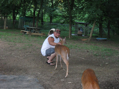 There are less sad stories at the ranch too. My mom has to move on to those because her eyes are starting to leak. One of the coolest things they do at the ranch is rehabilitate injured or orphaned animals. Here's uncle Nick with a deer.