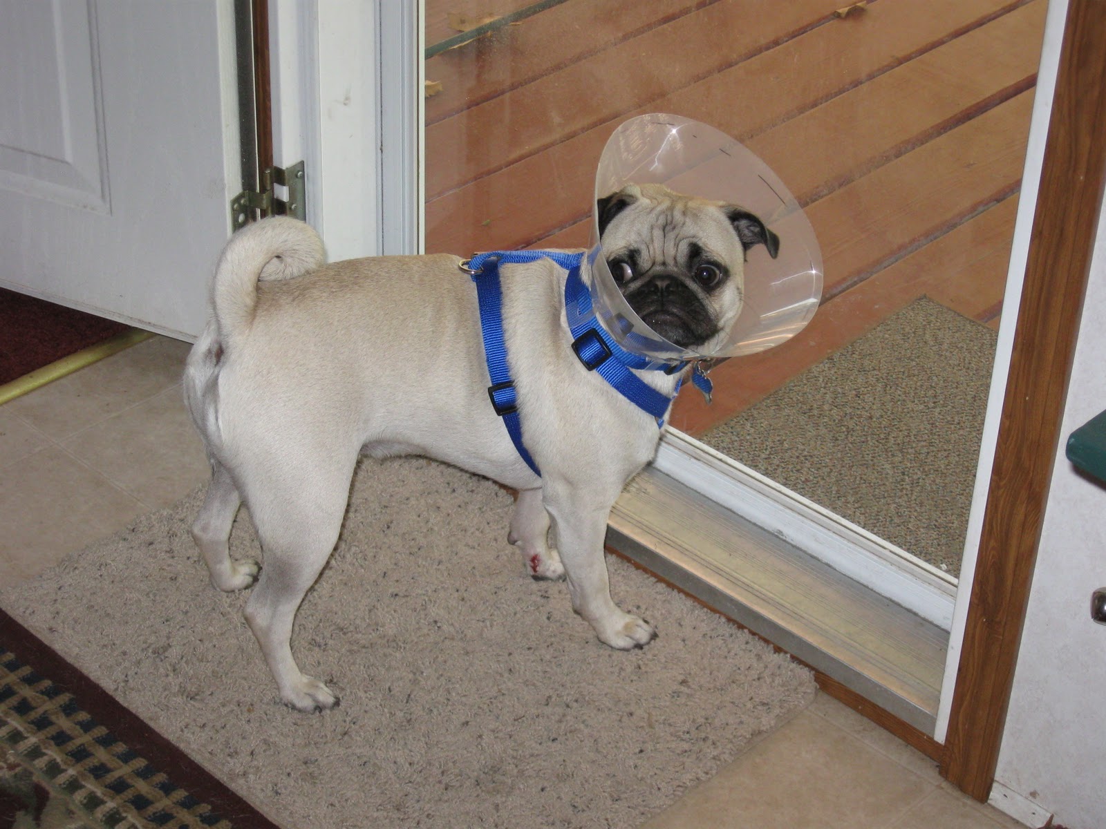 I'm glad that nasty old cyst is gone. You look so cute with your little paws wrapped up. But I know that is a big pain,so up with the cone of shame!